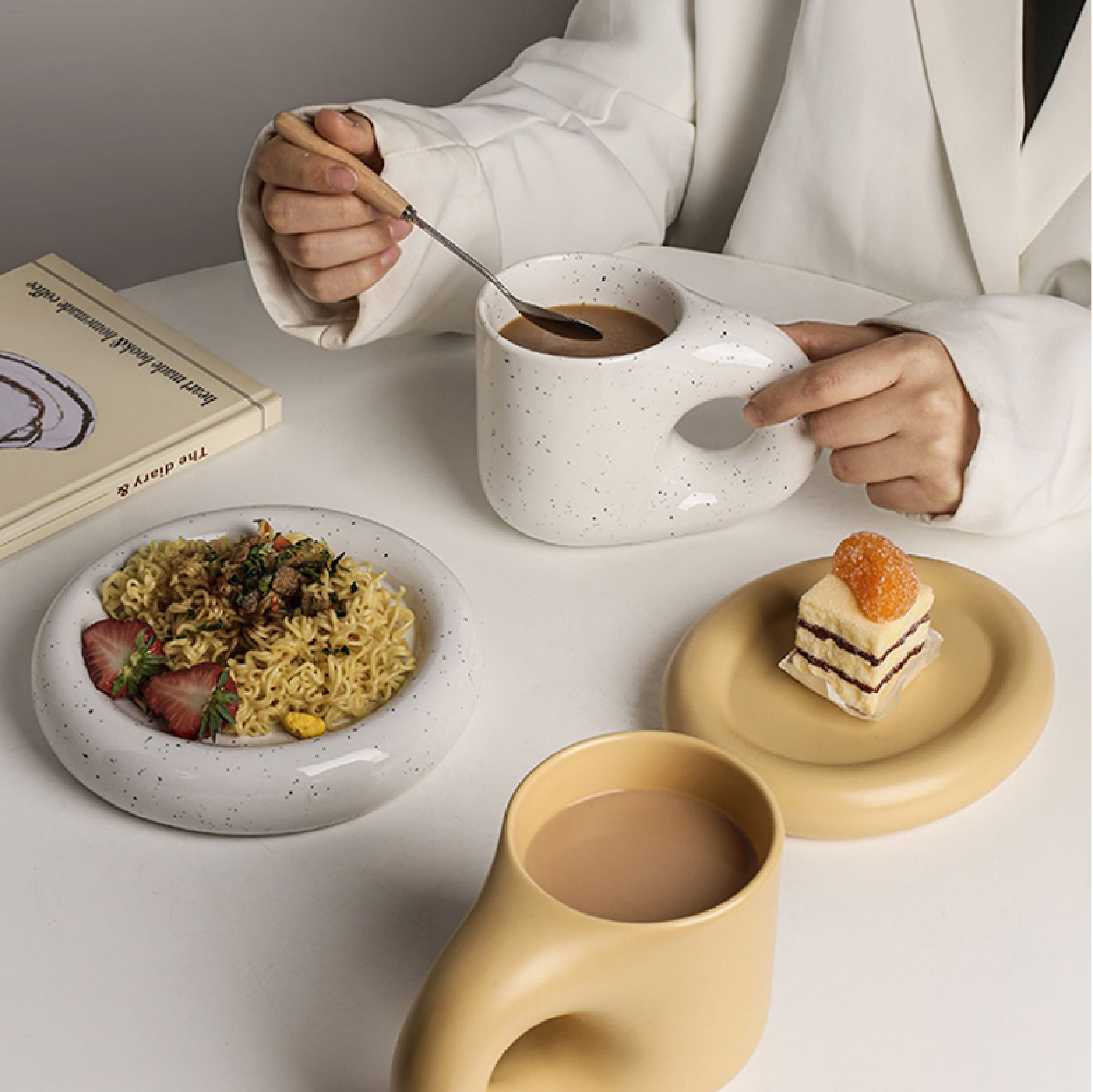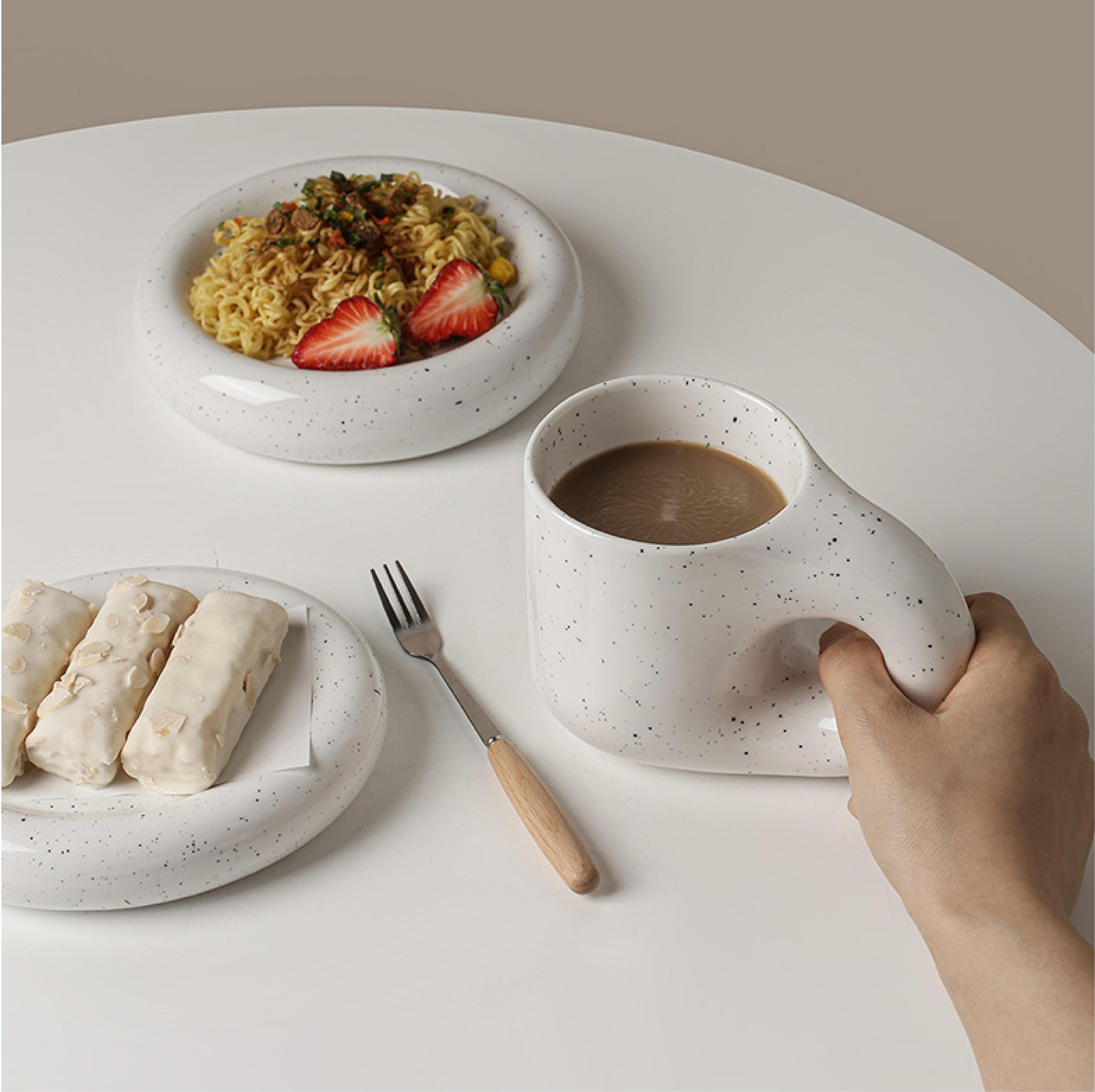 insにも流行っているチャビーカップ&プレートご存知でしょうか。ミルキー系の色味とポッチャリの形でとてもかわいいです。カフェラッテ、デザートとめっちゃ似合ってます。商品オプションボタンで自由に組み合わせます。まとめて購入お得です。