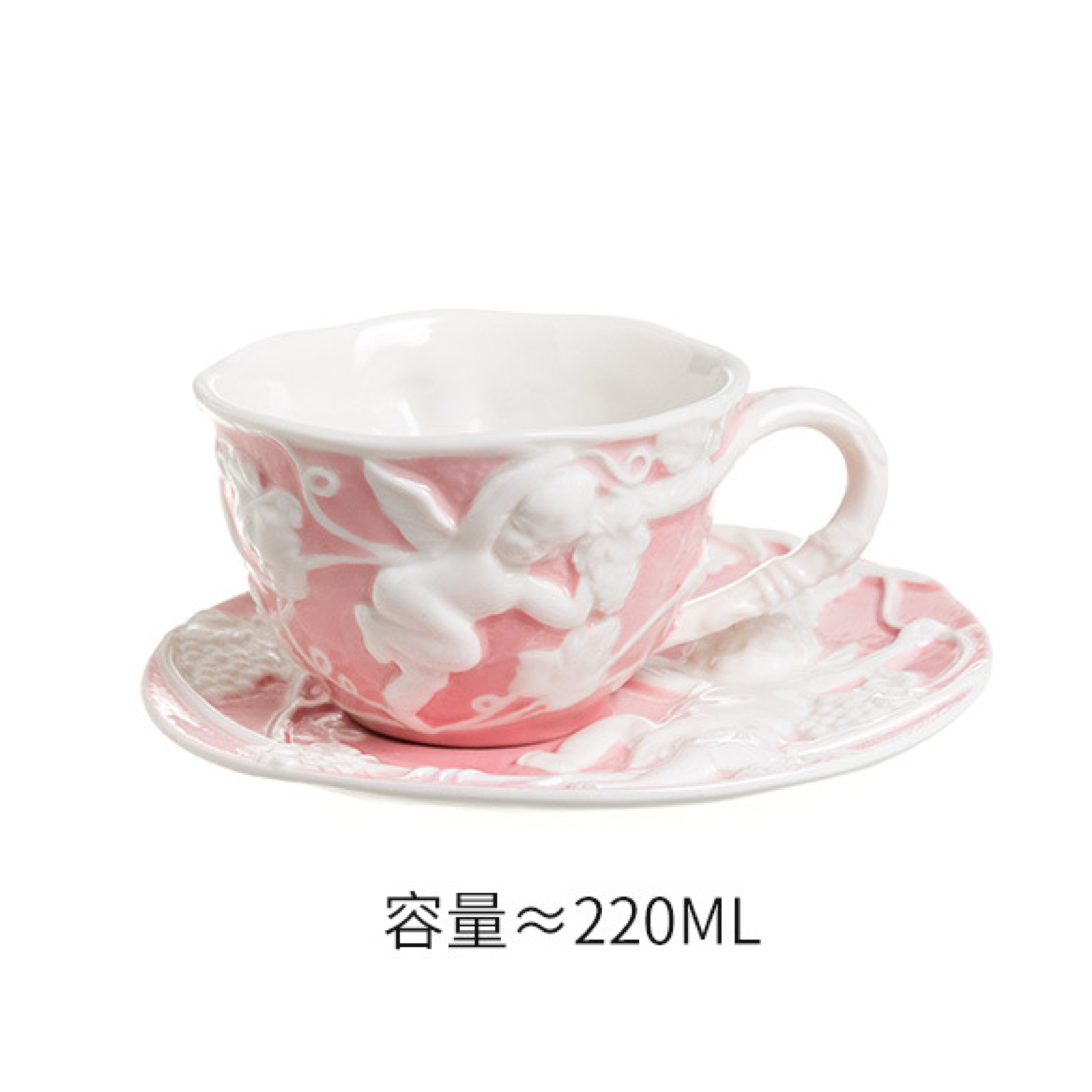 天使の模様があるオシャレなカップです。素朴な絵柄で、食卓に置いても、棚に置いても、見る度に心を癒やしてくれます。セット品ですので、お茶、水、コーヒーなどを入れ、家族も来客もたくさんの場面を対応できます。
