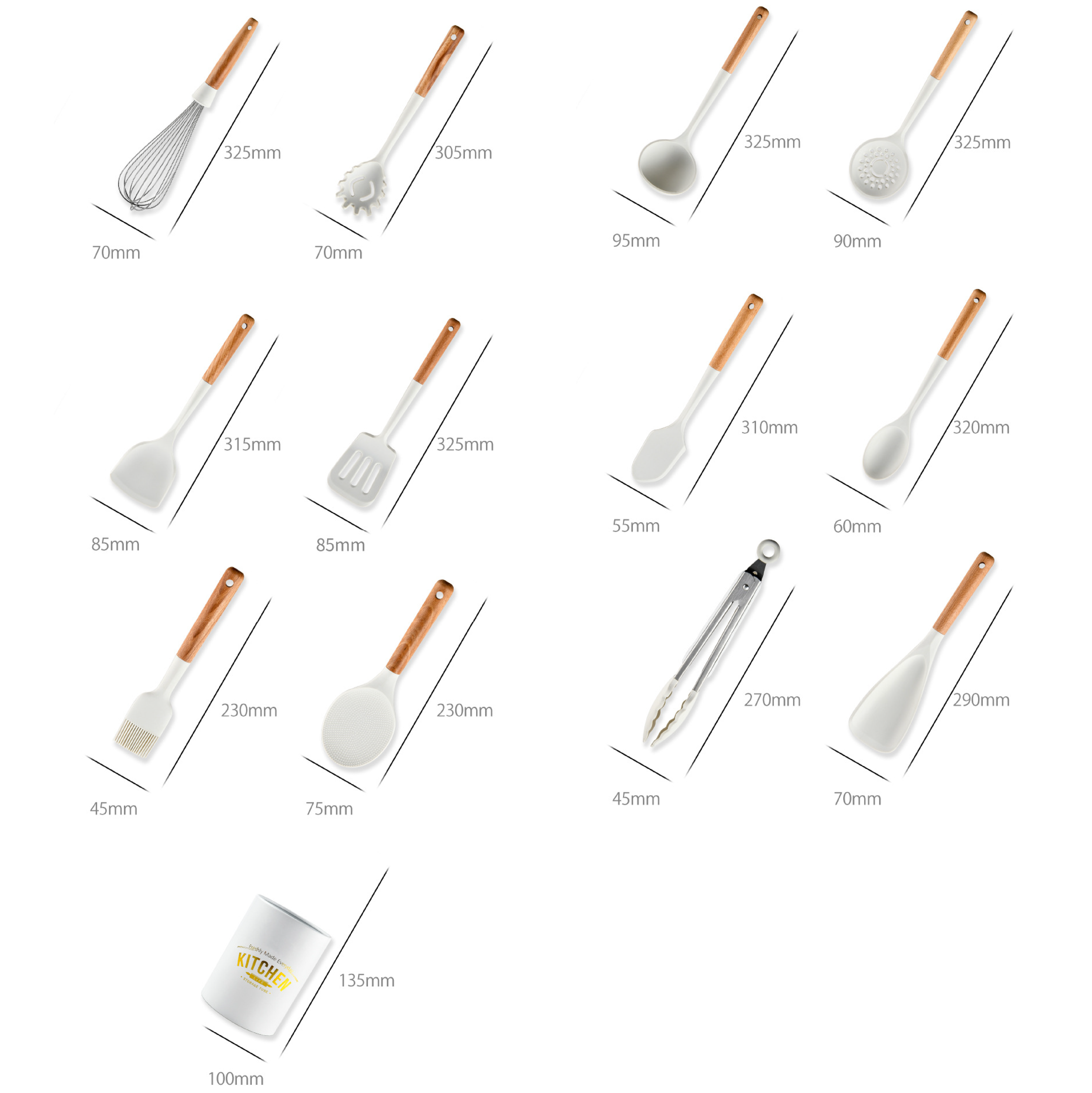 木の持ち手のオシャレな調理具12点セットです。